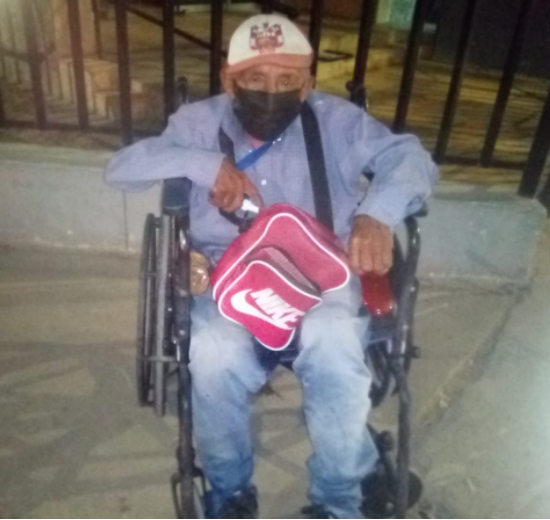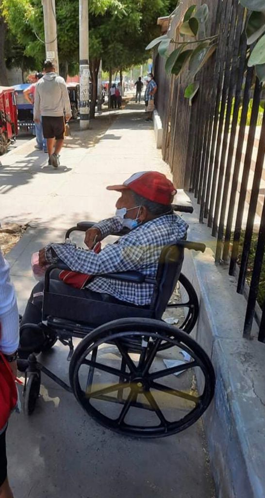 Alfredo Flores Tineo, is a grandfather who due to a joint effusion is destined to move around in a wheelchair and begs for alms in the street.